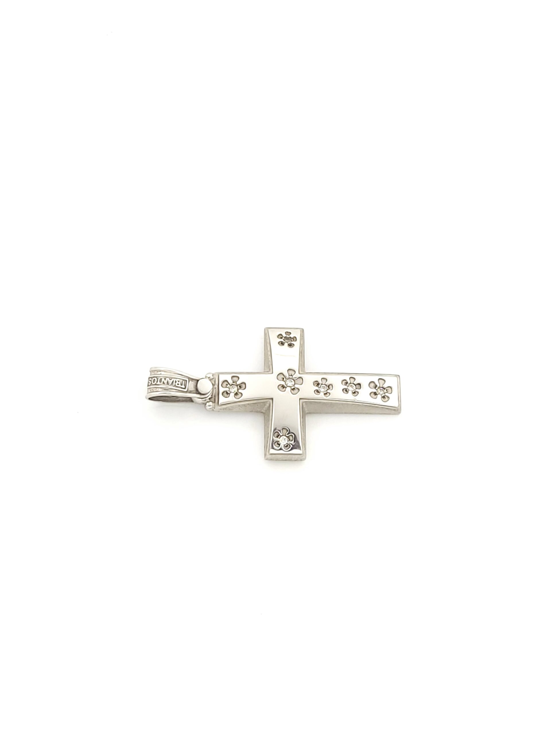 Λευκόχρυσος Γυναικείος Σταυρός Κ14 Τριάντος,Με Λουλούδια και Ζιργκόν