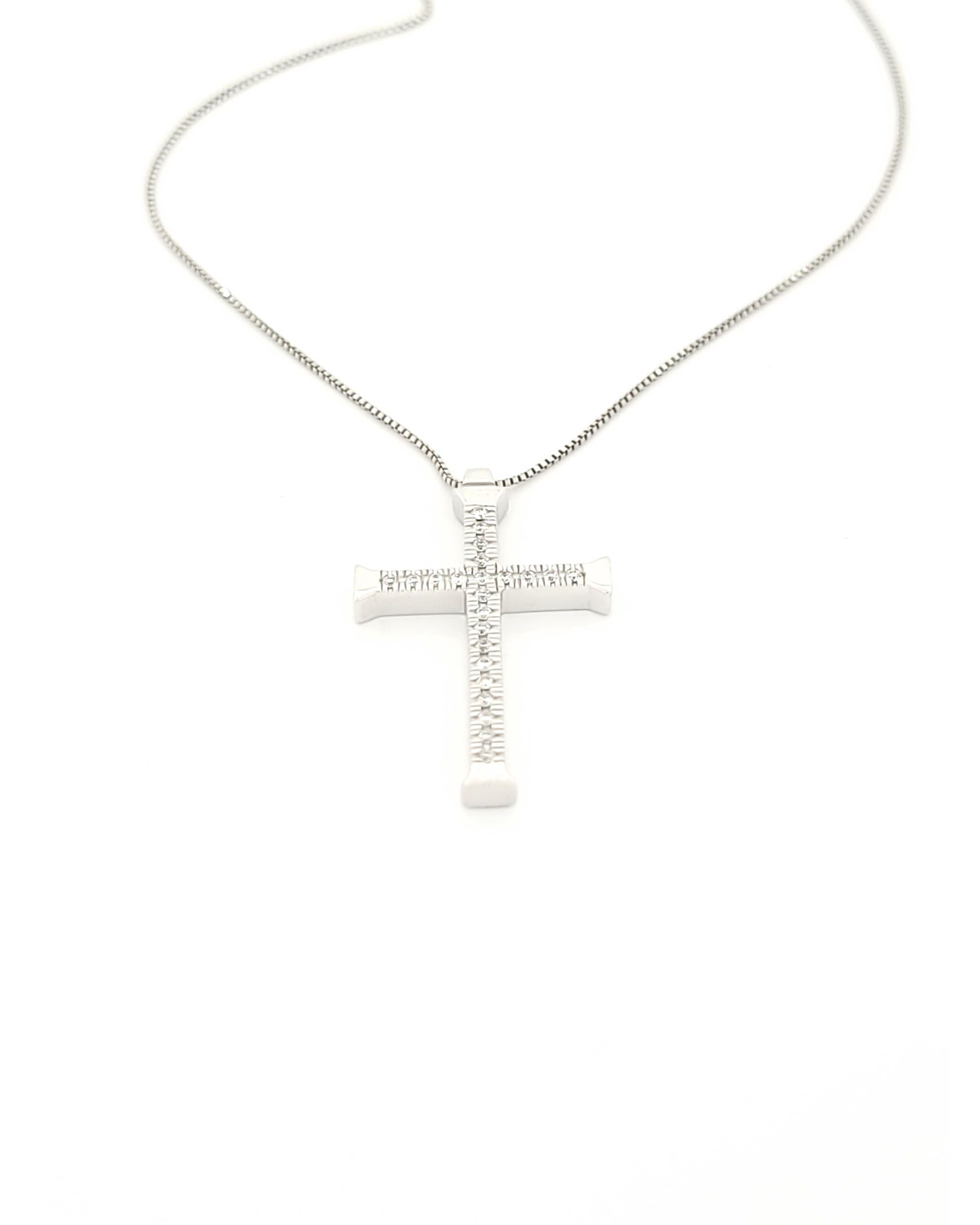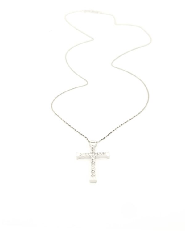 Λευκόχρυσο Γυναικείο Κολιέ Κ18, Με Σταυρό Και Διαμάντια κωδ.107980