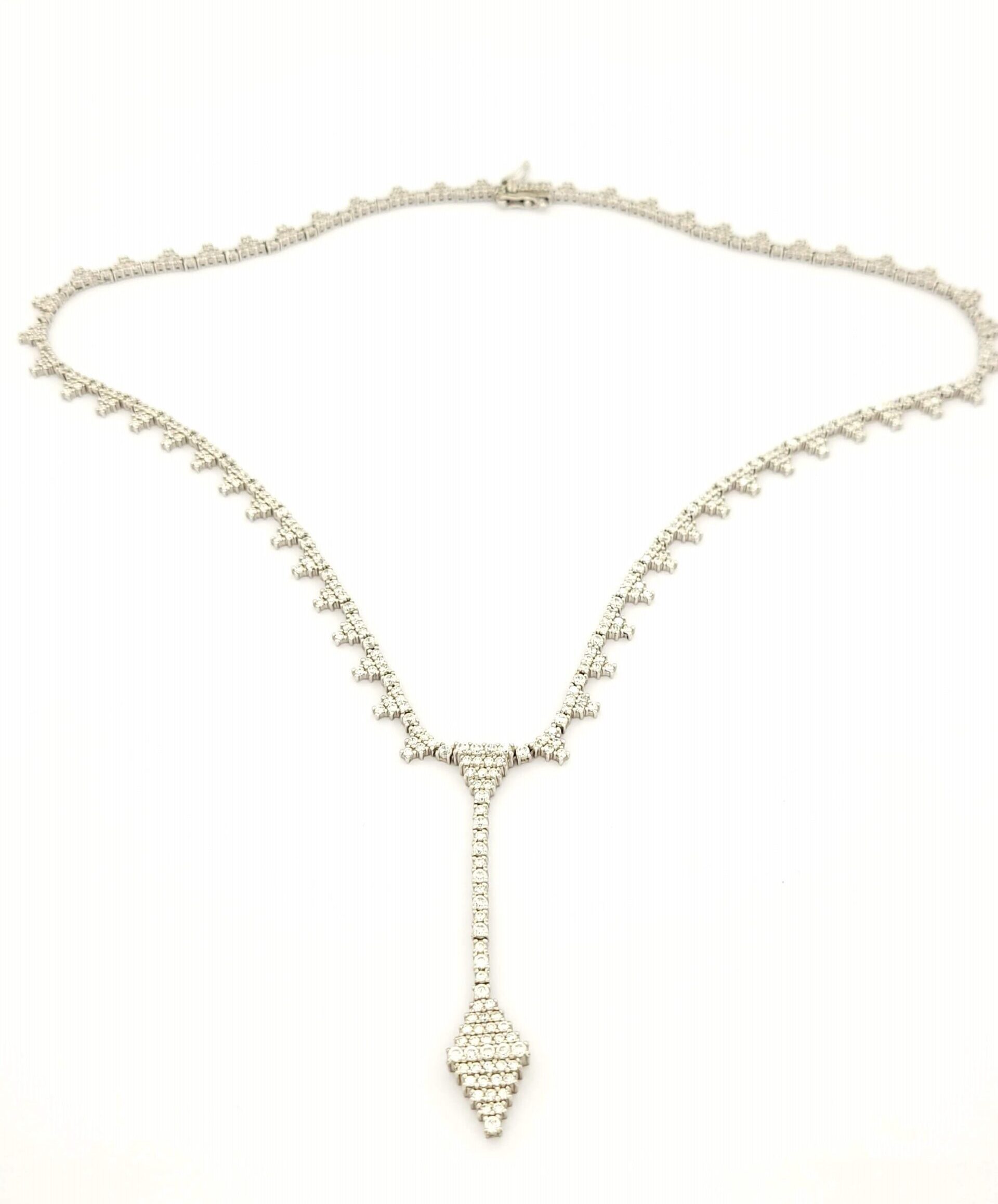 Λευκόχρυσο Γυναικείο Κολιέ Γραβάτα Κ14, Με Λευκά Ζιργκόν κωδ.101837