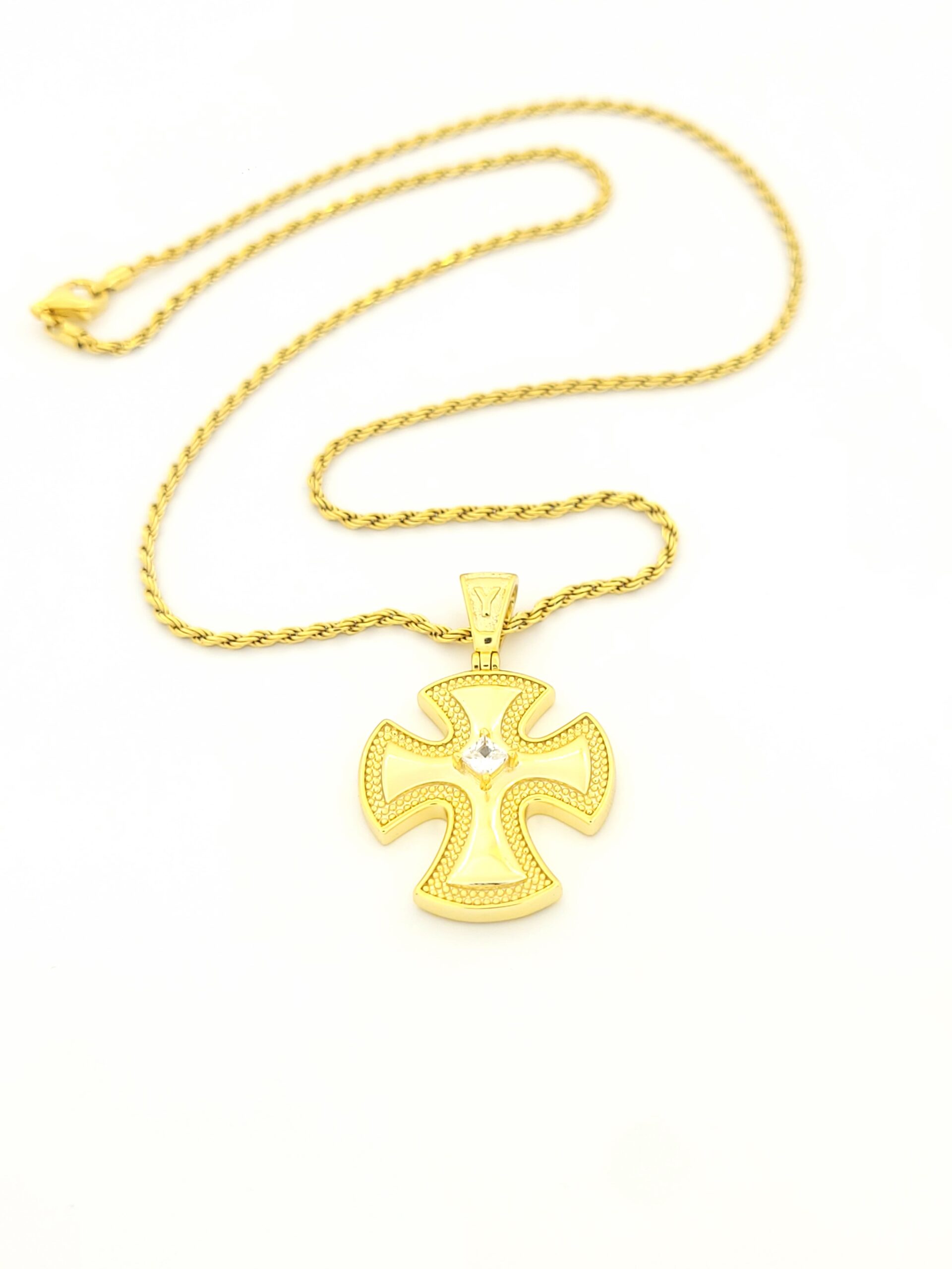 Ασημένιο Επιχρυσωμένο Γυναικείο Κολιέ, Με Σταυρό με Λευκό Ζιργκόν κωδ.107312
