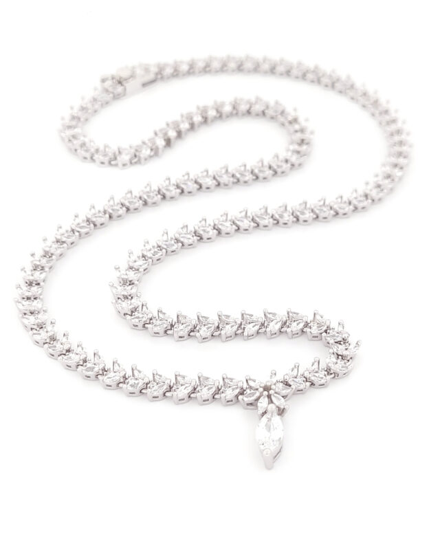 Ασημένιο Γυναικείo Κολιέ, Με Φύλλα Με Λευκά Ζιργκόν κωδ.109565