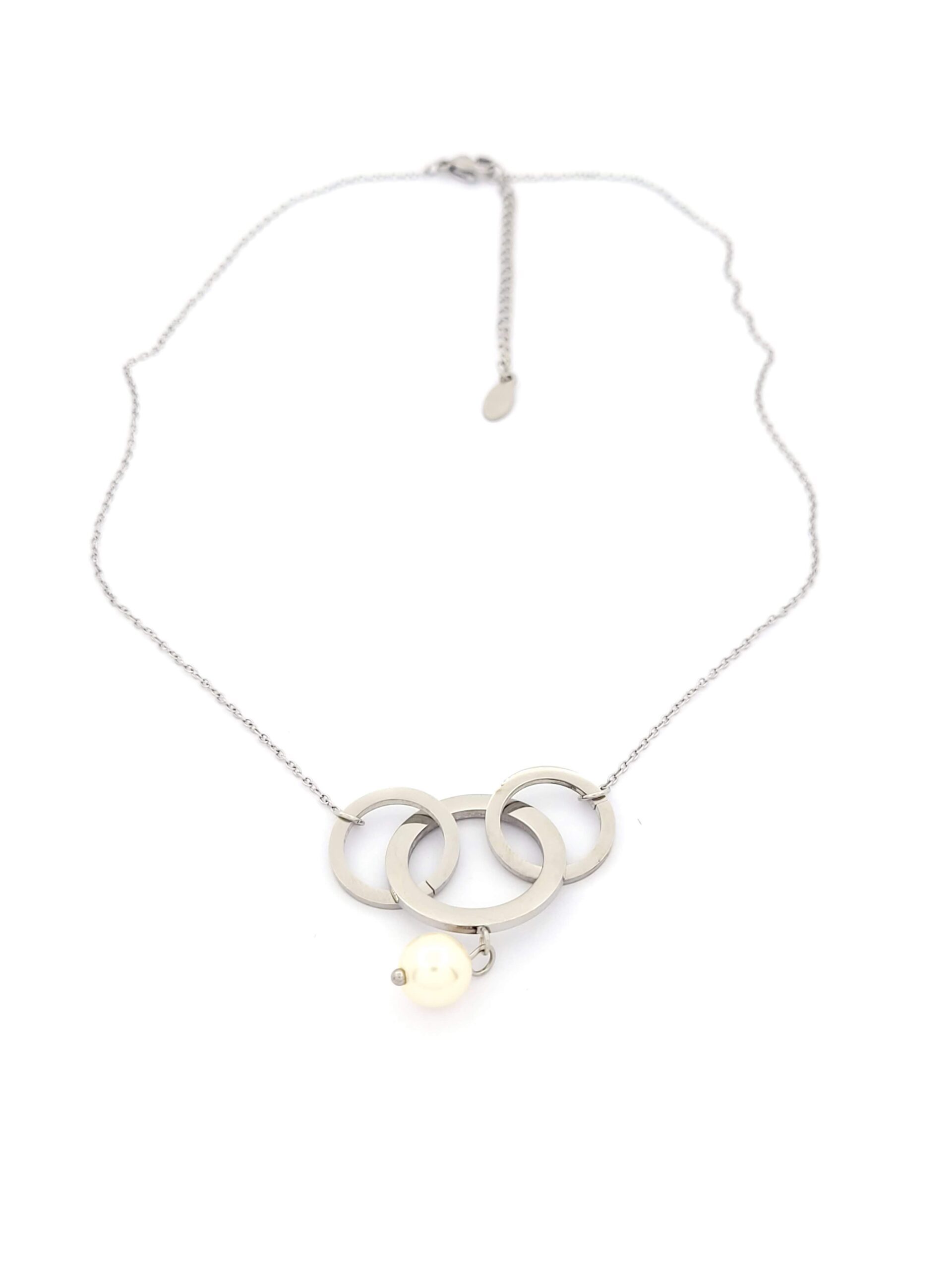 Ατσάλινο Γυναικείο Κολιέ Puppis Με Πέρλα και Κύκλους κωδ.PUP38791S