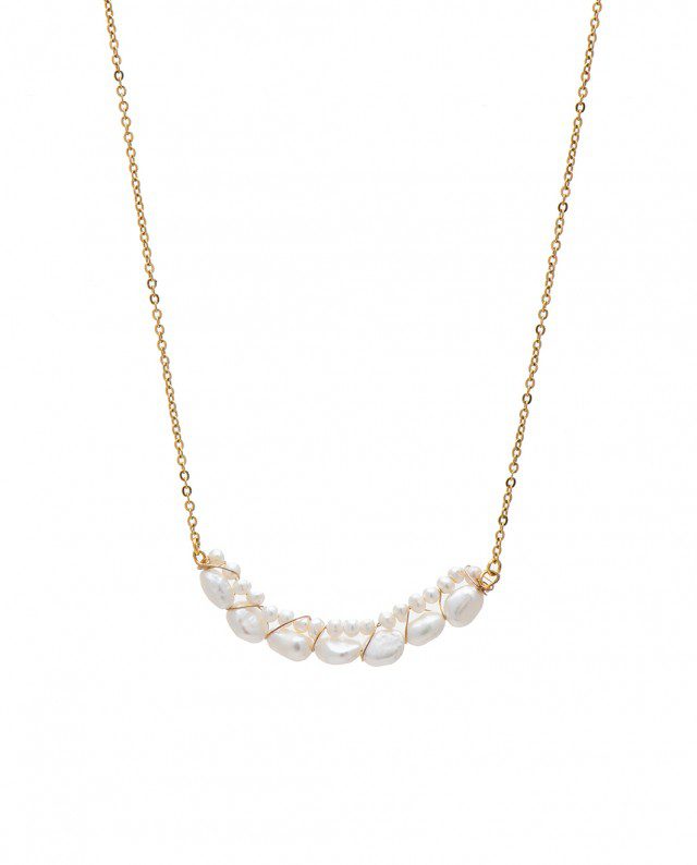 Ορειχάλκινο Χειροποίητο Επιχρυσωμένο Γυναικείο Κολιέ της LifeLikes, Με Πέρλες