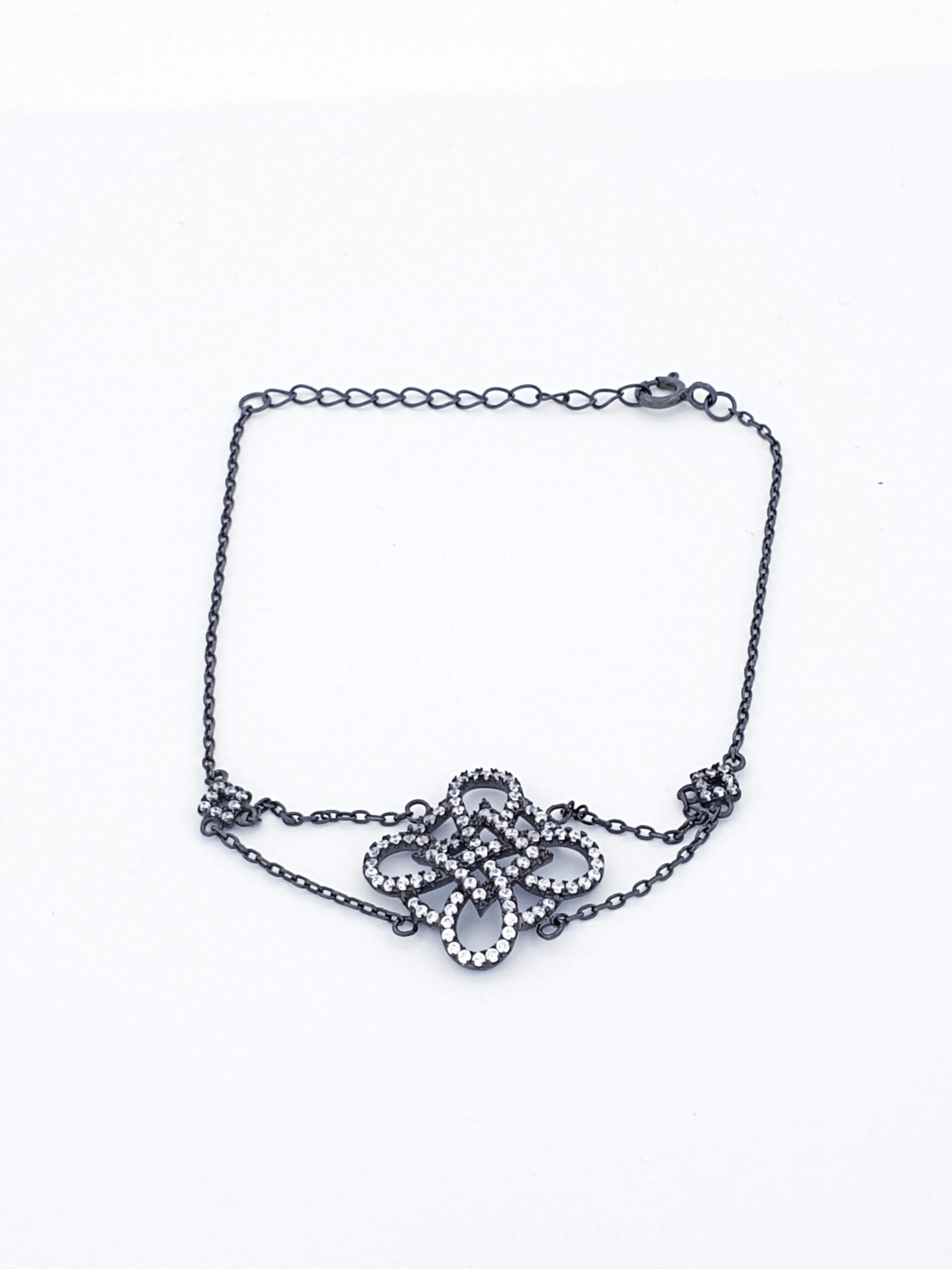 Ασημένιο Γυναικείο Βραχιόλι με Μαύρο Πλατίνωμα και Άσπρα Ζιργκόν κωδ.UL023467