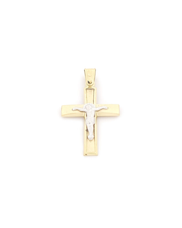 Xρυσός Δίχρωμος Ανδρικός Ματ Λουστρέ Σταυρός Κ14, Με Εσταυρωμένο κωδ.109671