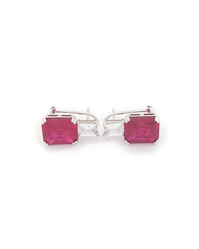 Ασημένια Γυναικεία Σκουλαρίκια Καρφωτά, Με Κόκκινα Και Λευκά Ζιργκόν κωδ.109564