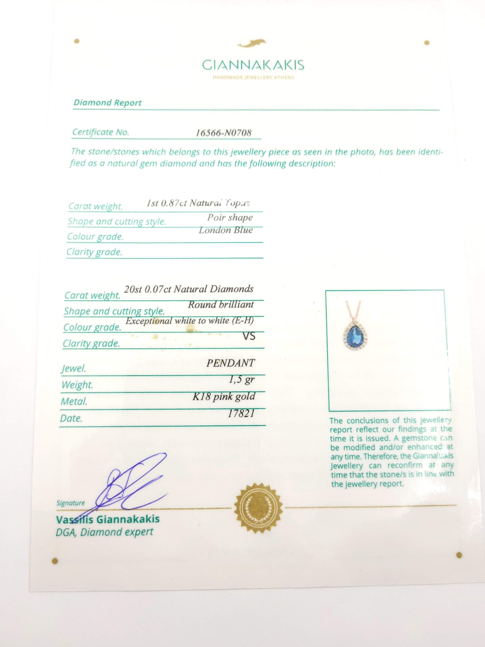Ροζ Gold Γυναικέιο Κολιέ Κ18 Giannakakis με Ροζέτα Δάκρυ Τοπάζ και Διαμάντια Μπριγιάν κωδ.N0708P6811
