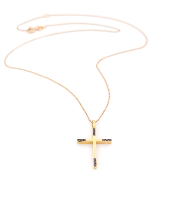 Ροζ Gold Γυναικείο Κολιέ Κ18, Με Σταυρό Και Μαύρα Διαμάντια