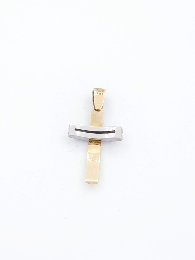 Χρυσός Χειροποίητος Δίχρωμος Ματ Σταυρός Κ14,κωδ.102050
