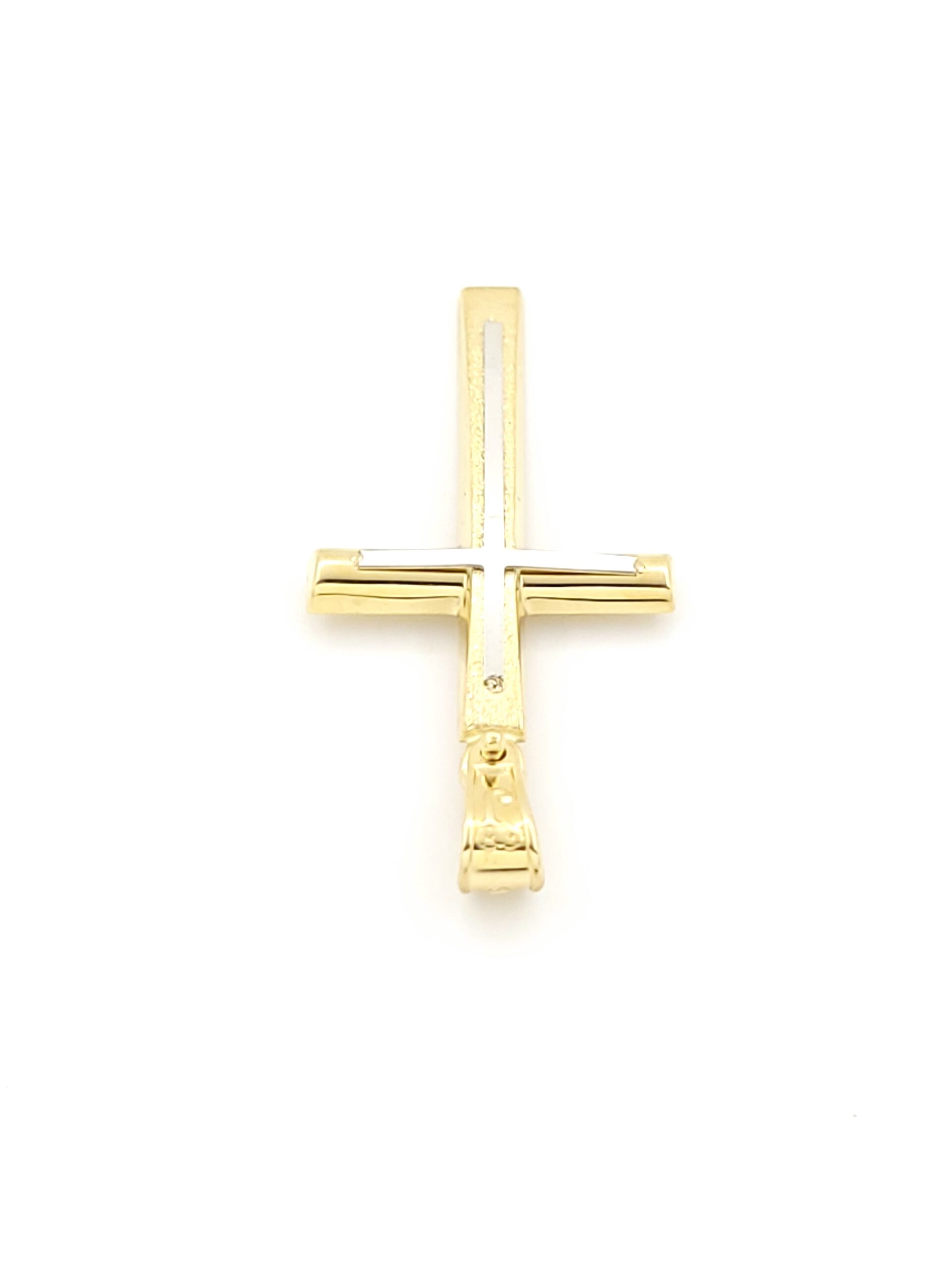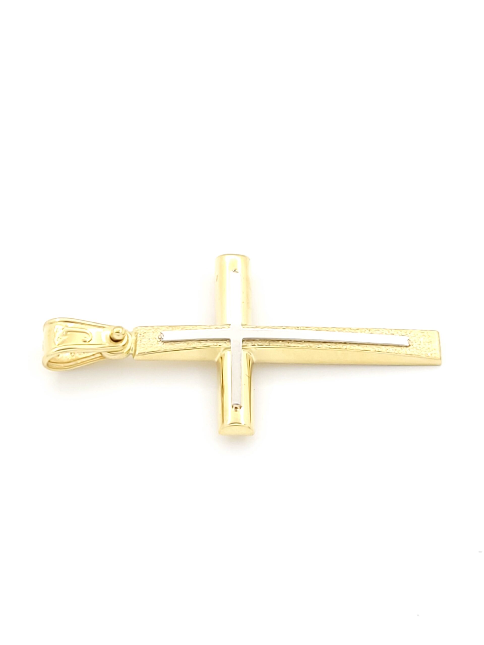Xρυσός Ανδρικός Σταυρός Κ14, Δίχρωμος Ματ Λουστρέ κωδ.108378