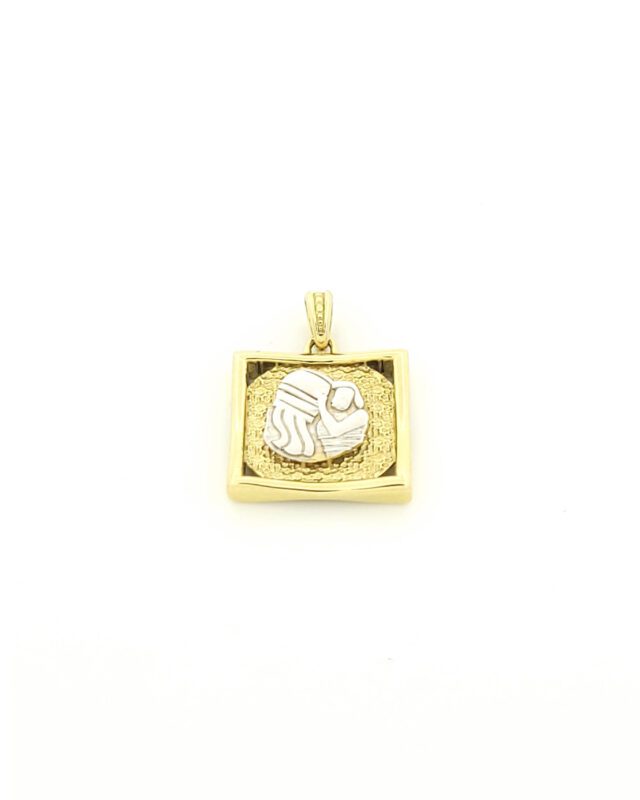 Χρυσό Δίχρωμο Γυναικείο Κρεμαστό K9 Διπλής όψης, Με Ζώδιο Υδροχόο Και Λευκά Ζιργκόν κωδ.109194