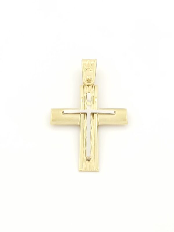 Xρυσός Δίχρωμος Ανδρικός Ματ Σταυρός Κ14