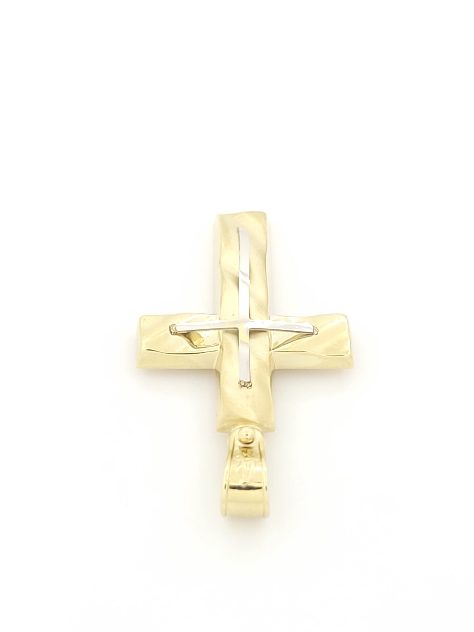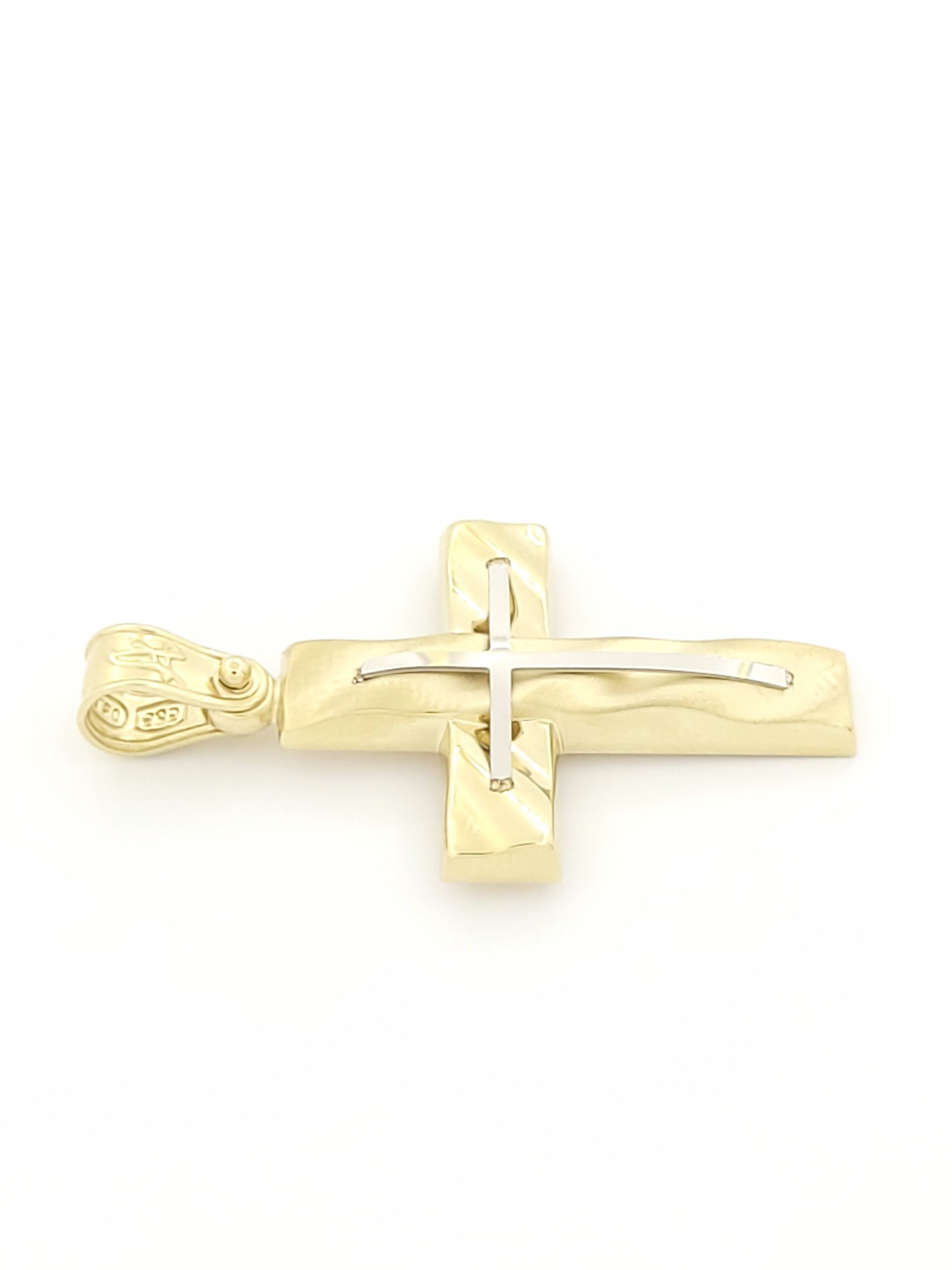 Xρυσός Δίχρωμος Ανδρικός Σταυρός Ματ Λουστρέ Κ14