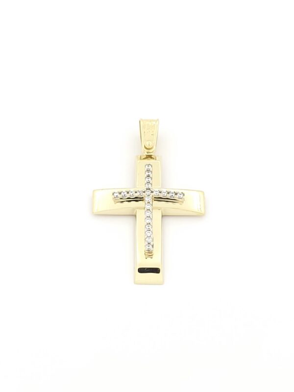 Xρυσός Γυναικείος Σταυρός Κ14, Λουστρέ Με Λευκά Ζιργκόν κωδ.109669