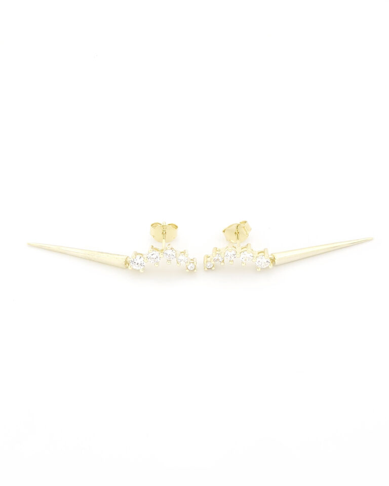 Ασημένια Επιχρυσωμένα Γυναικεία Σκουλαρίκια Κρεμαστά Καρφί Με Λευκά Ζιργκόν Ασήμι 925 Βάρος: 3 γραμμάρια Διαστάσεις: 38* 5mm Εγγύηση Kirki Kosmima Guarantee 23137
