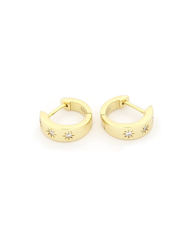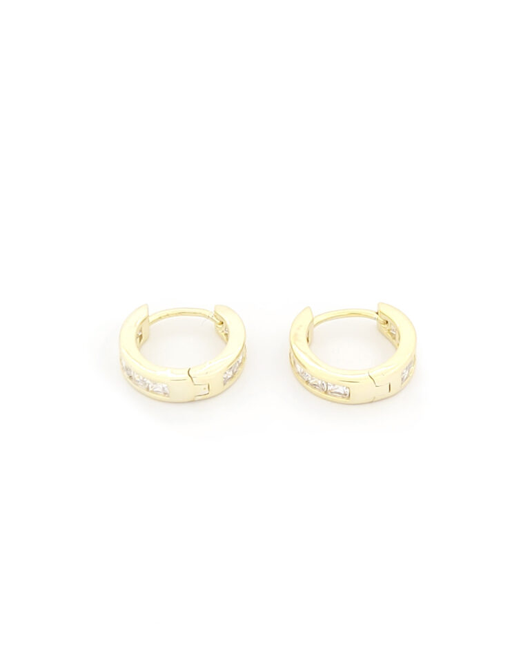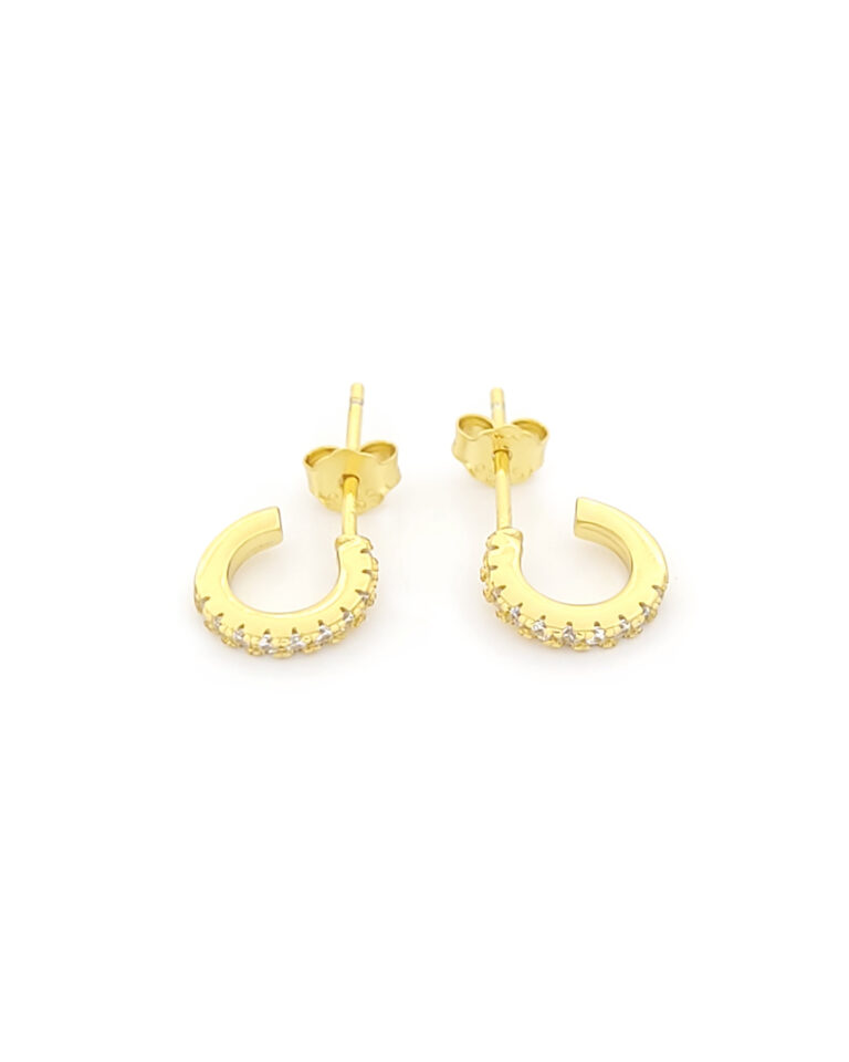 Ασημένια Επιχρυσωμένα Σκουλαρίκια Κρίκοι, Με Λευκά Ζιργκόν Ασήμι 925 Βάρος: 1.8 γραμμάρια Διαστάσεις: 11mm*3mm Εγγύηση Kirki Kosmima Guarantee EZA100828