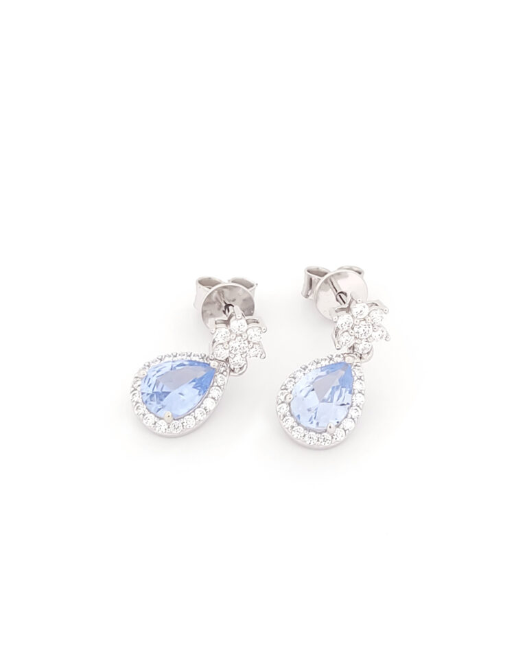 Ασημένια Σκουλαρίκια Κρεμαστά Ροζέτα, Με Γαλάζιο και Λευκά Ζιργκόν Ασήμι 925 Βάρος: 3.7 γραμμάρια Διαστάσεις: 18mm * 16mm * 4mm Εγγύηση Kirki Kosmima Guarantee EZA100828