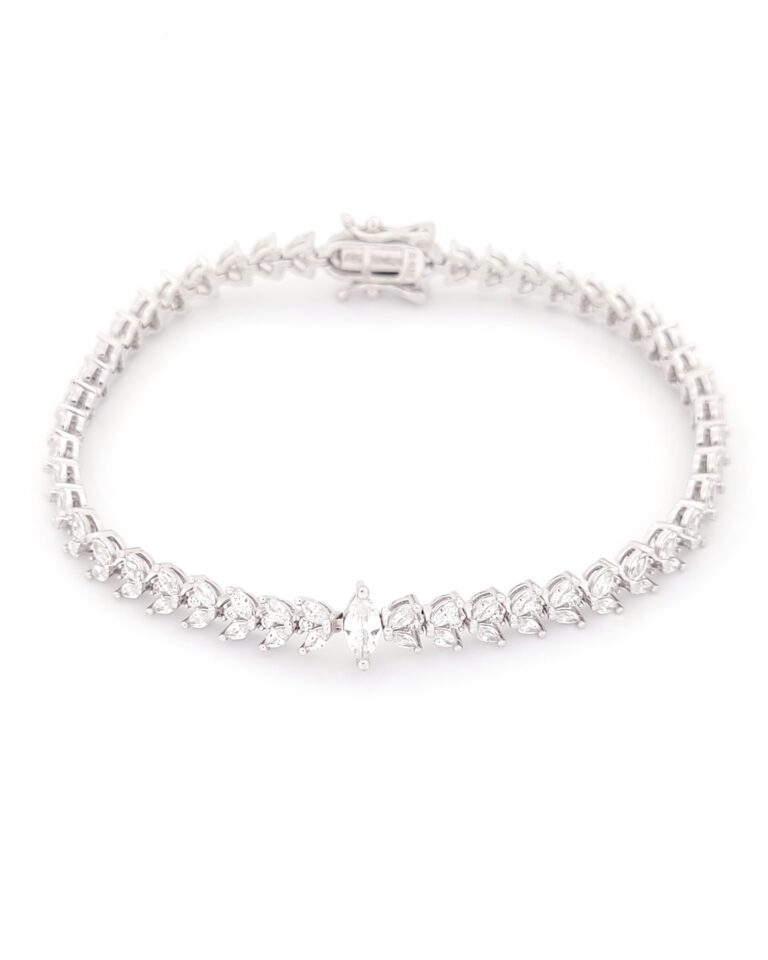 Ασημένιο Γυναικείο Βραχιόλι, Με Φύλλα Με Λευκά Ζιργκόν κωδ.109566