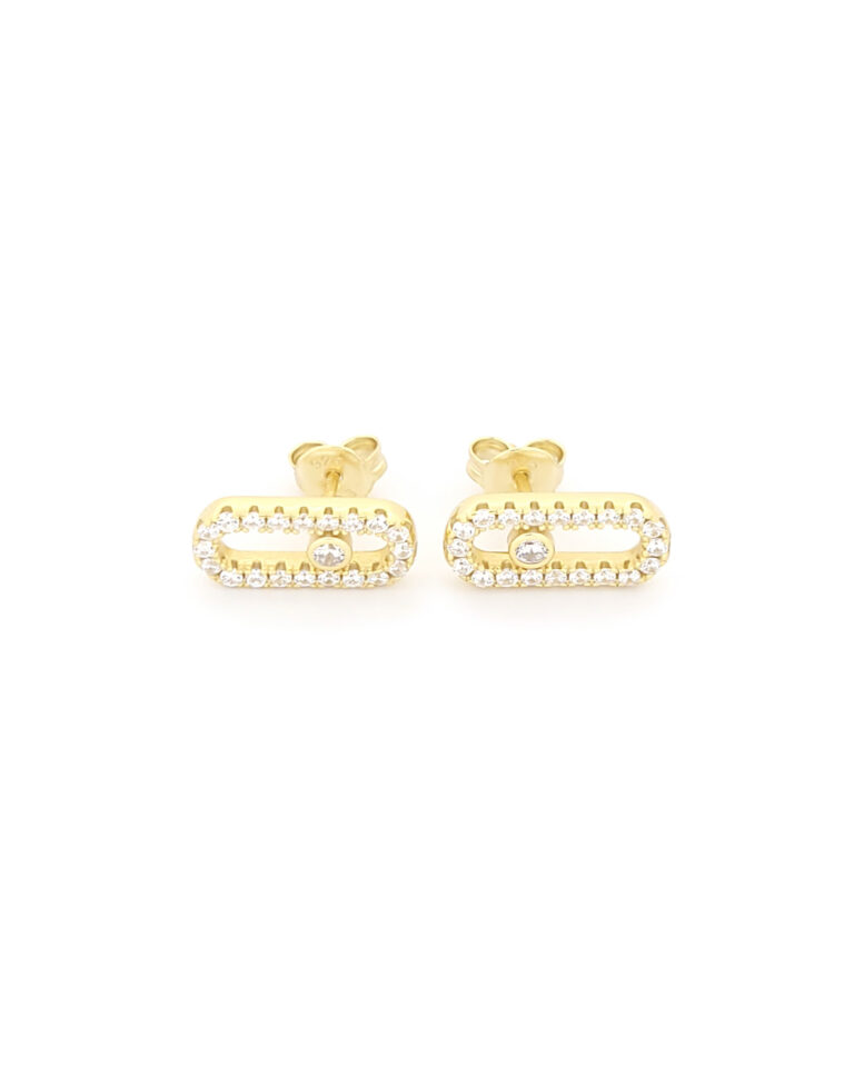 Ασημένια Επιχρυσωμένα Σκουλαρίκια Καρφωτά, Με Σειρέ Λευκά Ζιργκόν Ασήμι 925 Βάρος: 1.0 γραμμάρια Διαστάσεις: 18mm * 9mm * 2mm Εγγύηση Kirki Kosmima Guarantee EZB115228
