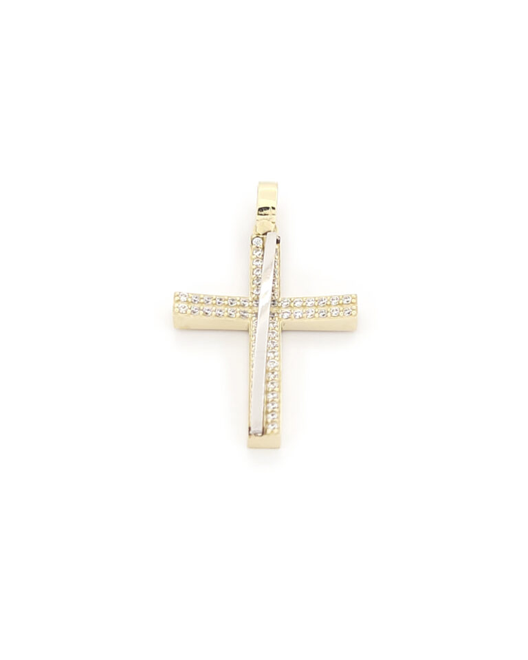 Xρυσός Δίχρωμος Γυναικείος Σταυρός Κ14, Λουστρέ Με Λευκά Ζιργκόν κωδ.109521