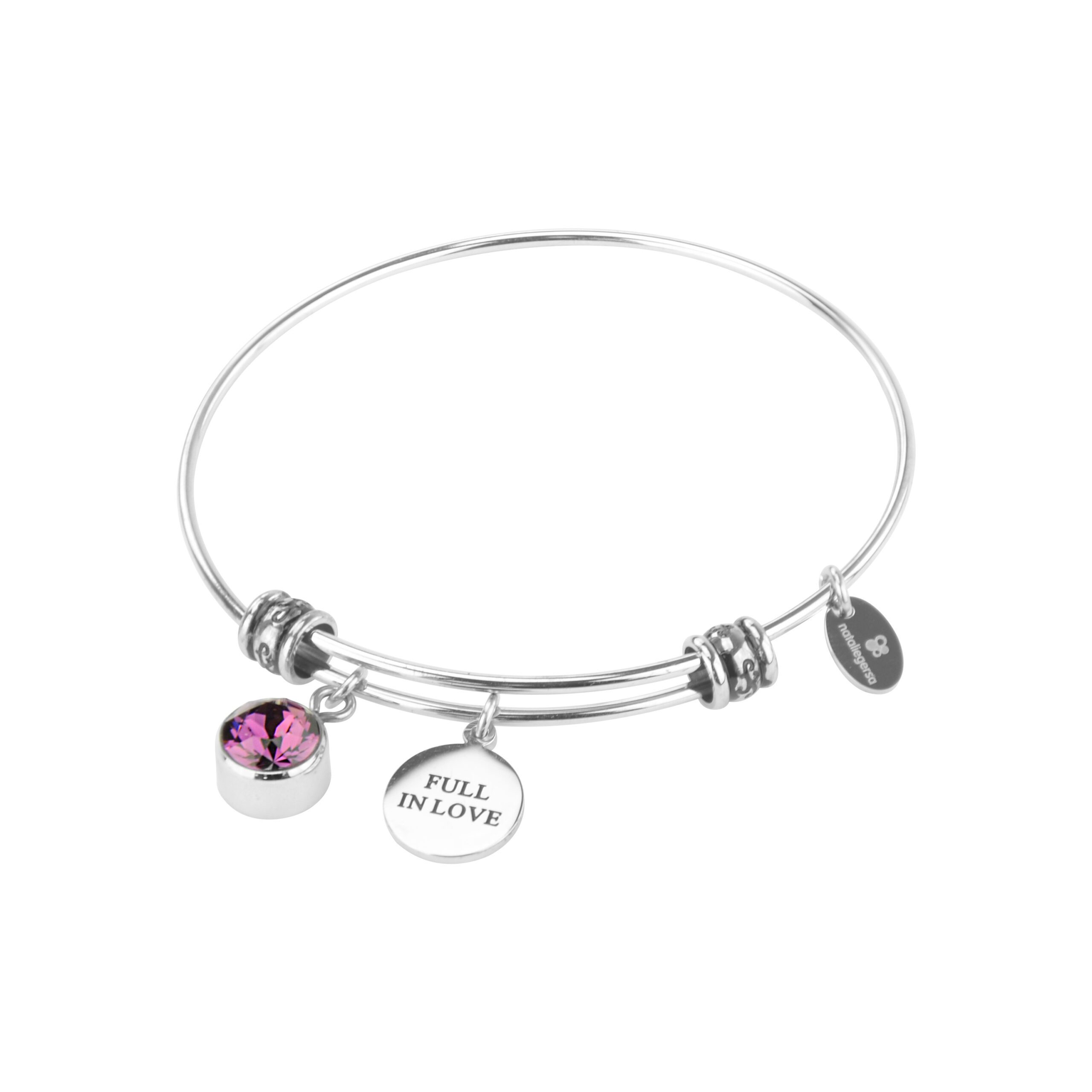 Ατσάλινη Χειροπέδα Βραχιόλι Nataliegersa Με Σύμβολο Αγάπης και Μωβ Ζιργκόν κωδ.B0041