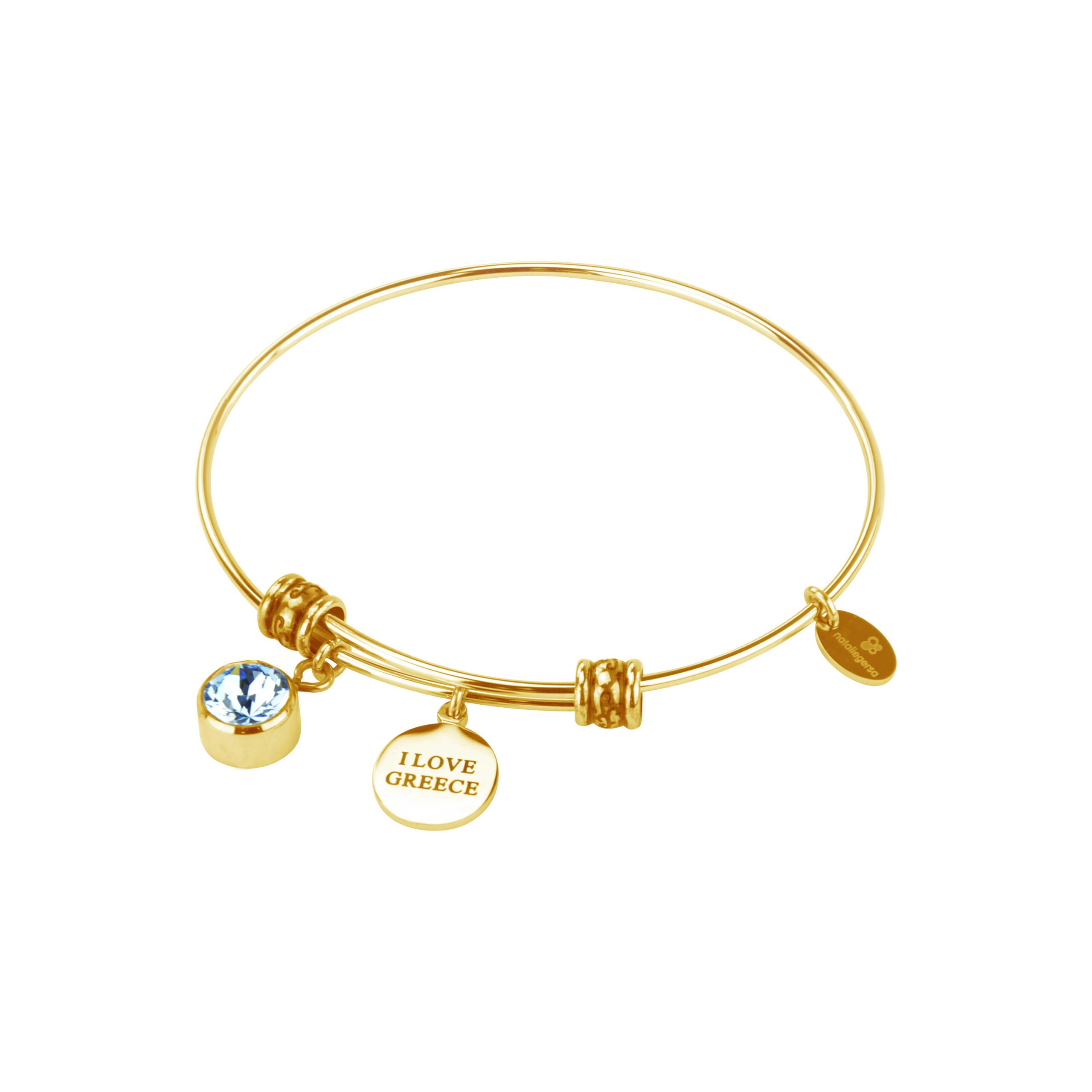 Ατσάλινη Χειροπέδα Βραχιόλι Nataliegersa Με Σύμβολο Ελλάδα και Μπλε Ζιργκόν κωδ.B0045