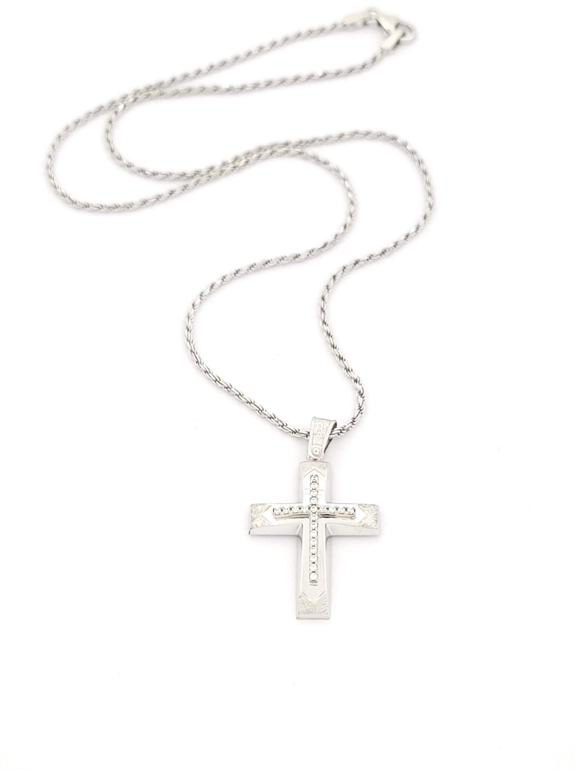 Ανδρικός Λευκόχρυσος Σταυρός Anorado Κ14 με Εσταυρωμένο