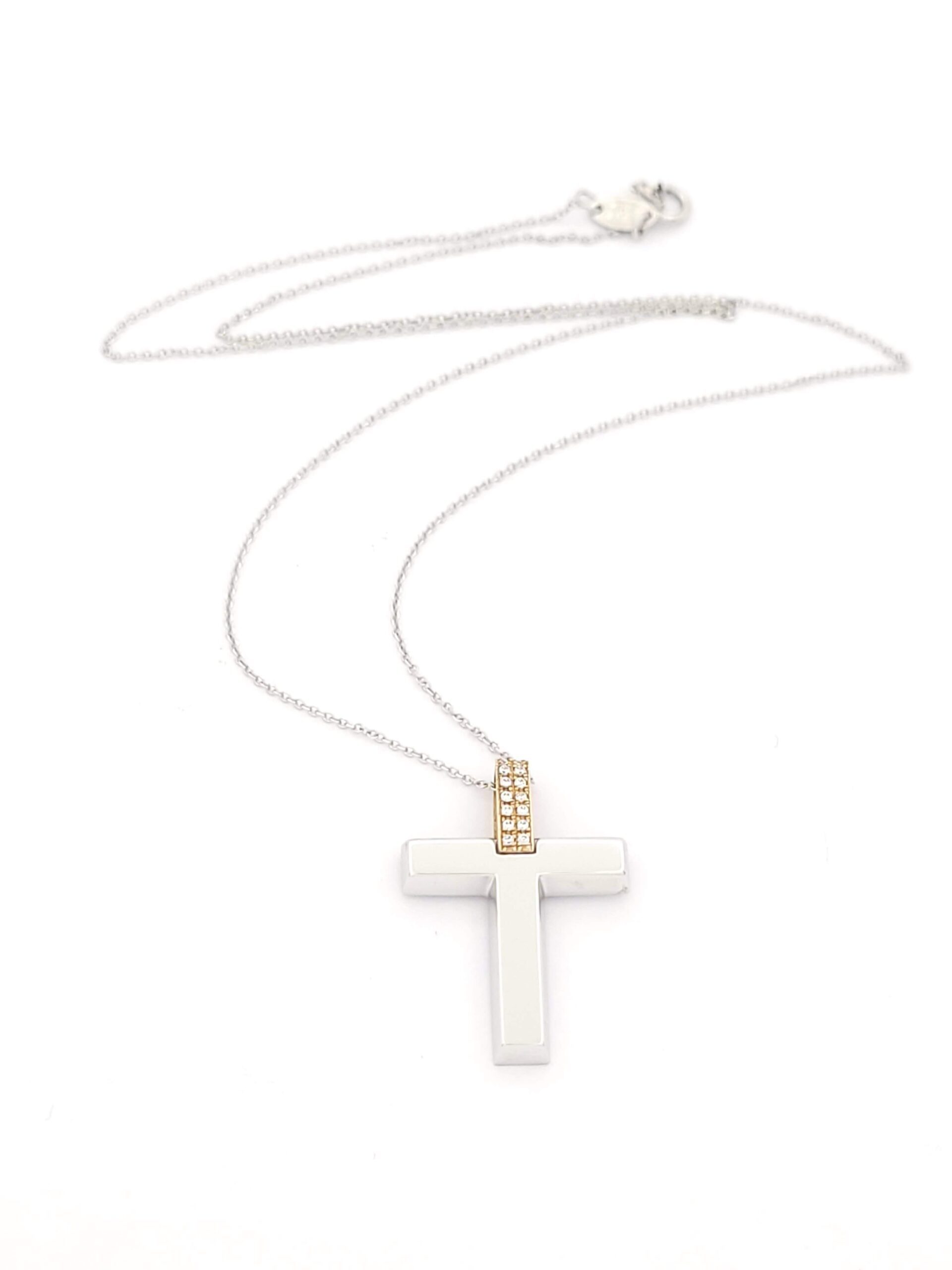 Λευκόχρυσος Δίχρωμος Γυναικείος Σταυρός Τριάντος K14 με Ζιργκόν, με Αλυσίδα κωδ.101151