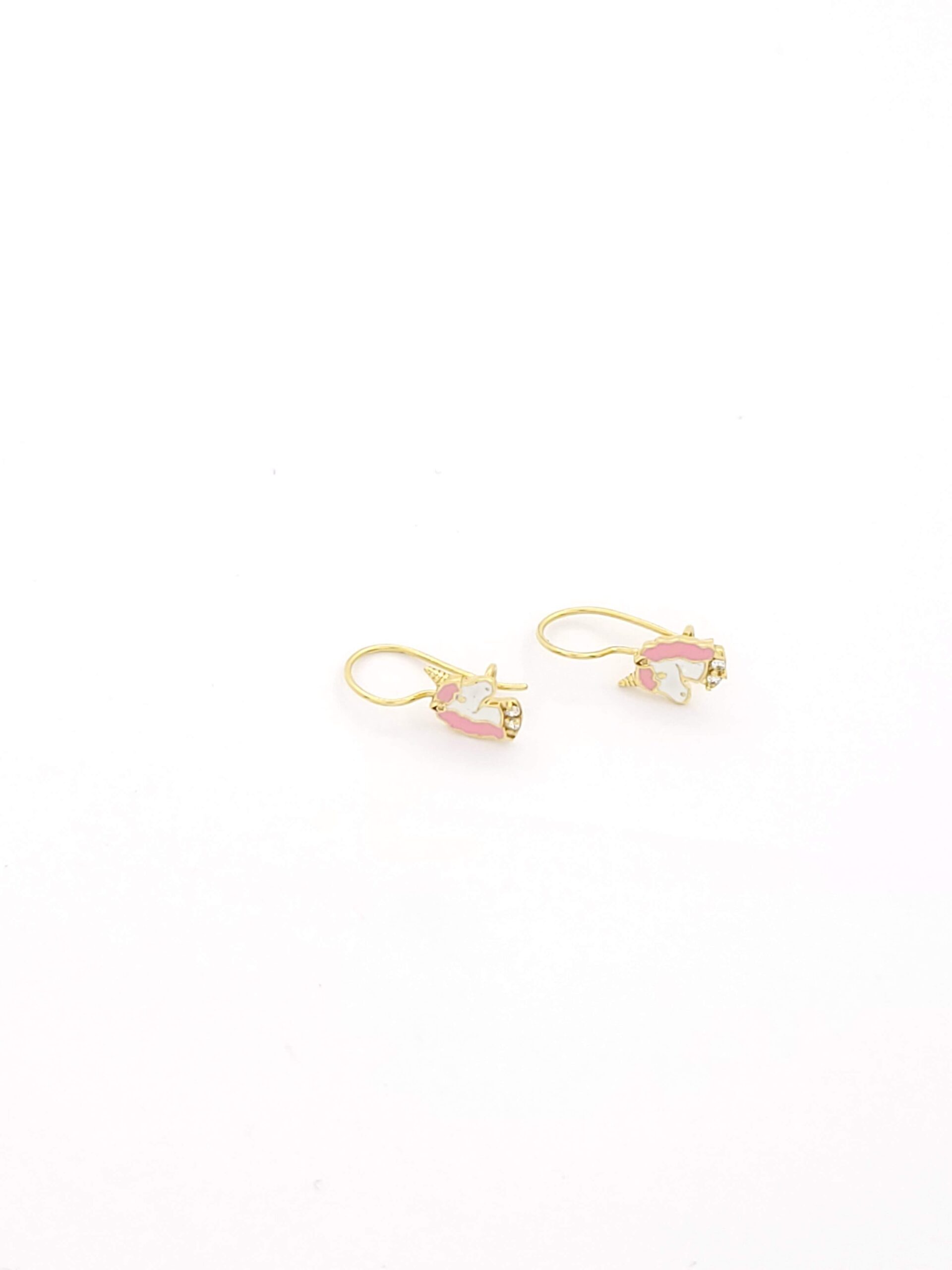 Χρυσά Σκουλαρίκια Κρεμαστά Κ9 Μονόκερος με Σμάλτο και Ζιργκόν K9 0,8 γραμμάρια Διαστάσεις 15*6mm Εγγύηση Kirki Kosmima Guarantee