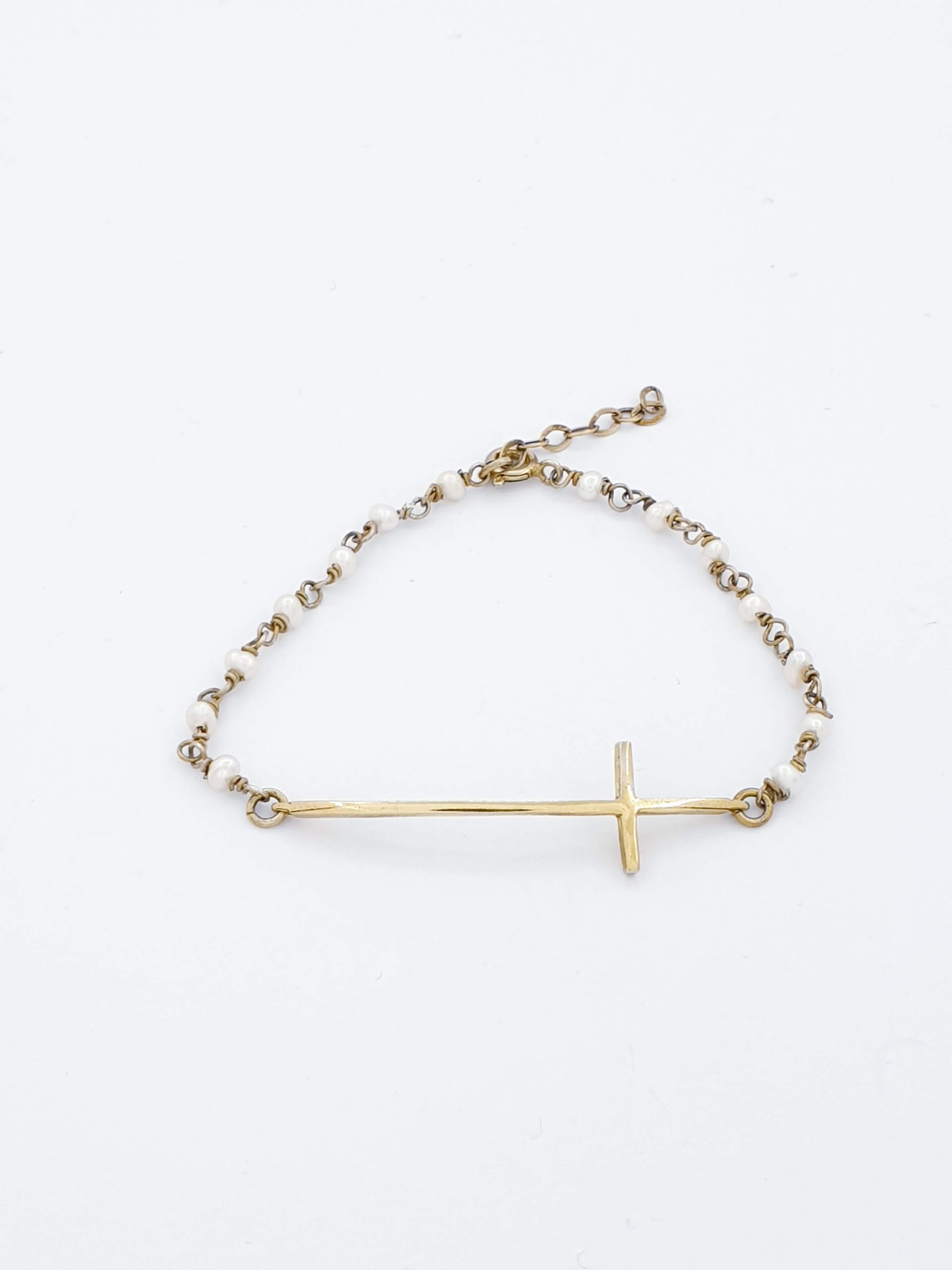 Ασημένιο Επιχρυσωμένο Γυναικείο Βραχιόλι με μαργαριταράκια και σταυρό κωδ.ΠΣ021743