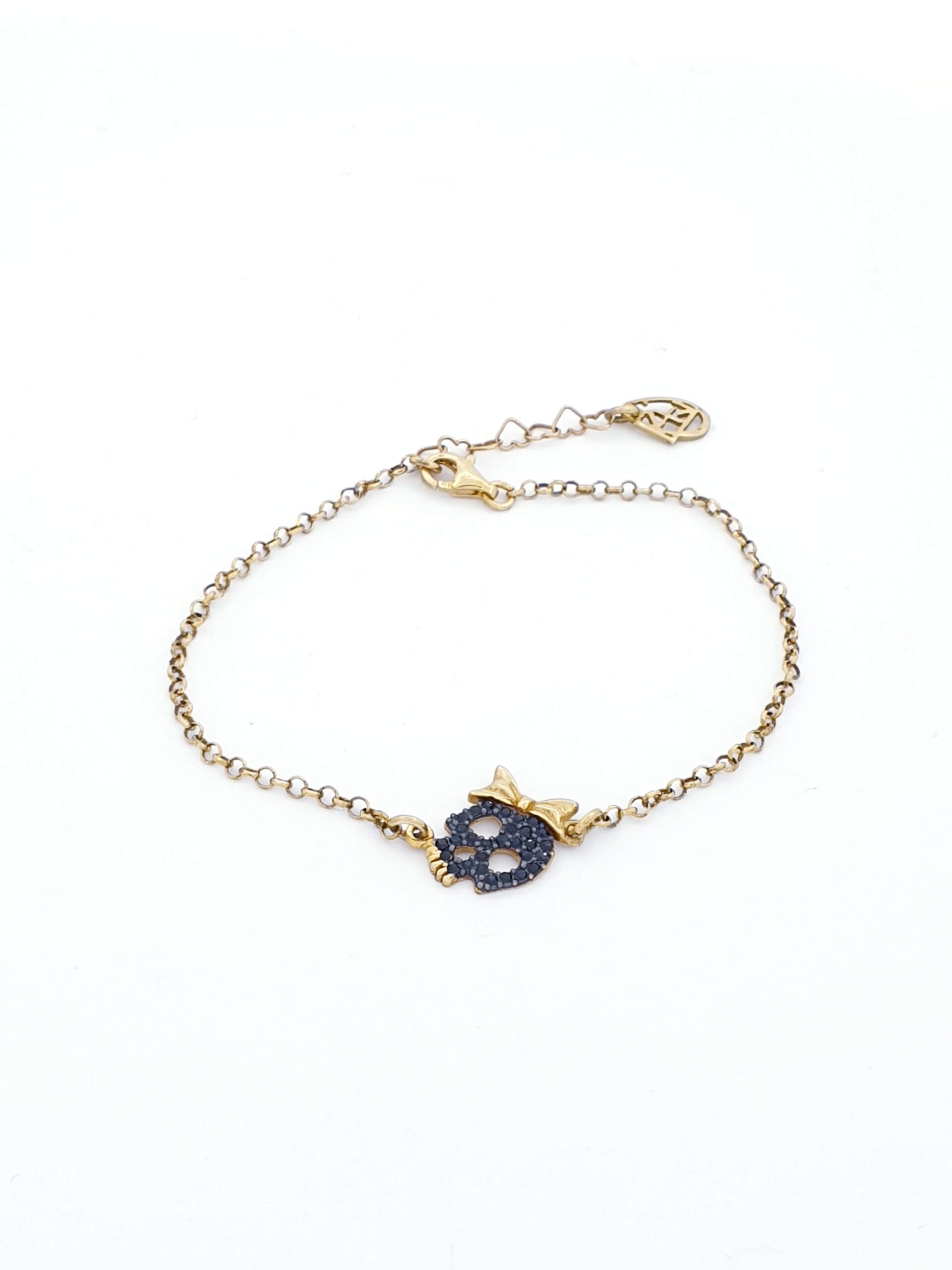 Ασημένιο Επιχρυσωμένο Γυναικείο Βραχιόλι Exis με νεκροκεφαλή με μαύρα ζιργκόν Ασήμι 925 2.4 γραμμάρια Μήκος 20cm Εγγύηση Kirki Kosmima Guarantee