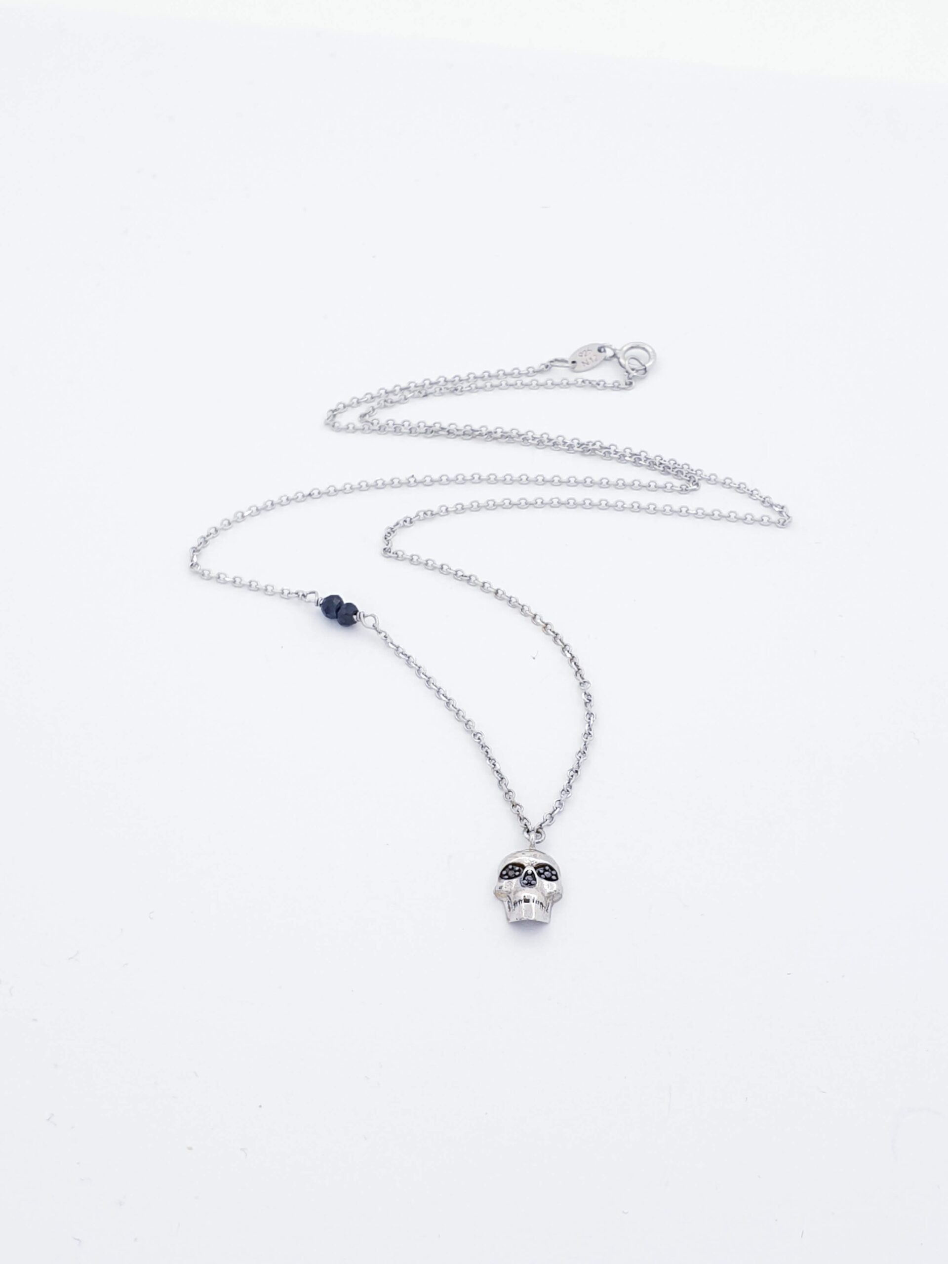 Ασημένιο Γυναικείο Κολιέ με σταυρουδάκι με Νεκροκεφαλή και μαύρα Ζιργκόν Ασήμι 925 2,0 γραμμάρια Μήκος 43cm Eγγύηση Kirki Kosmima Guarantee