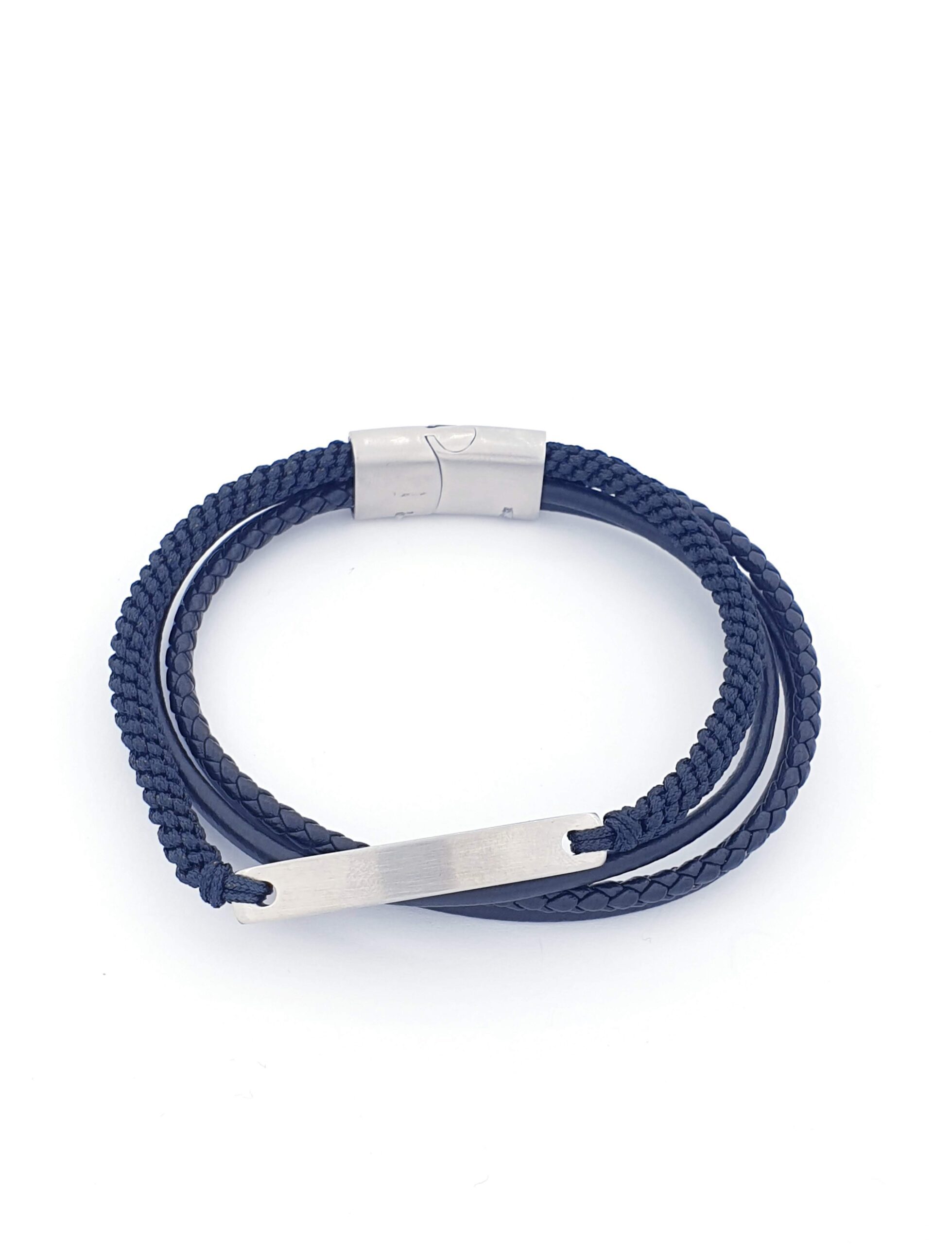 Ατσάλινο ανδρικό βραχιόλι με πλακέτα και μαύρο δέρμα Ανοξείδωτο ατσάλι Συρταρωτό μαγνητικό κούμπωμα Εγγύηση Kirki Kosmima Guarantee