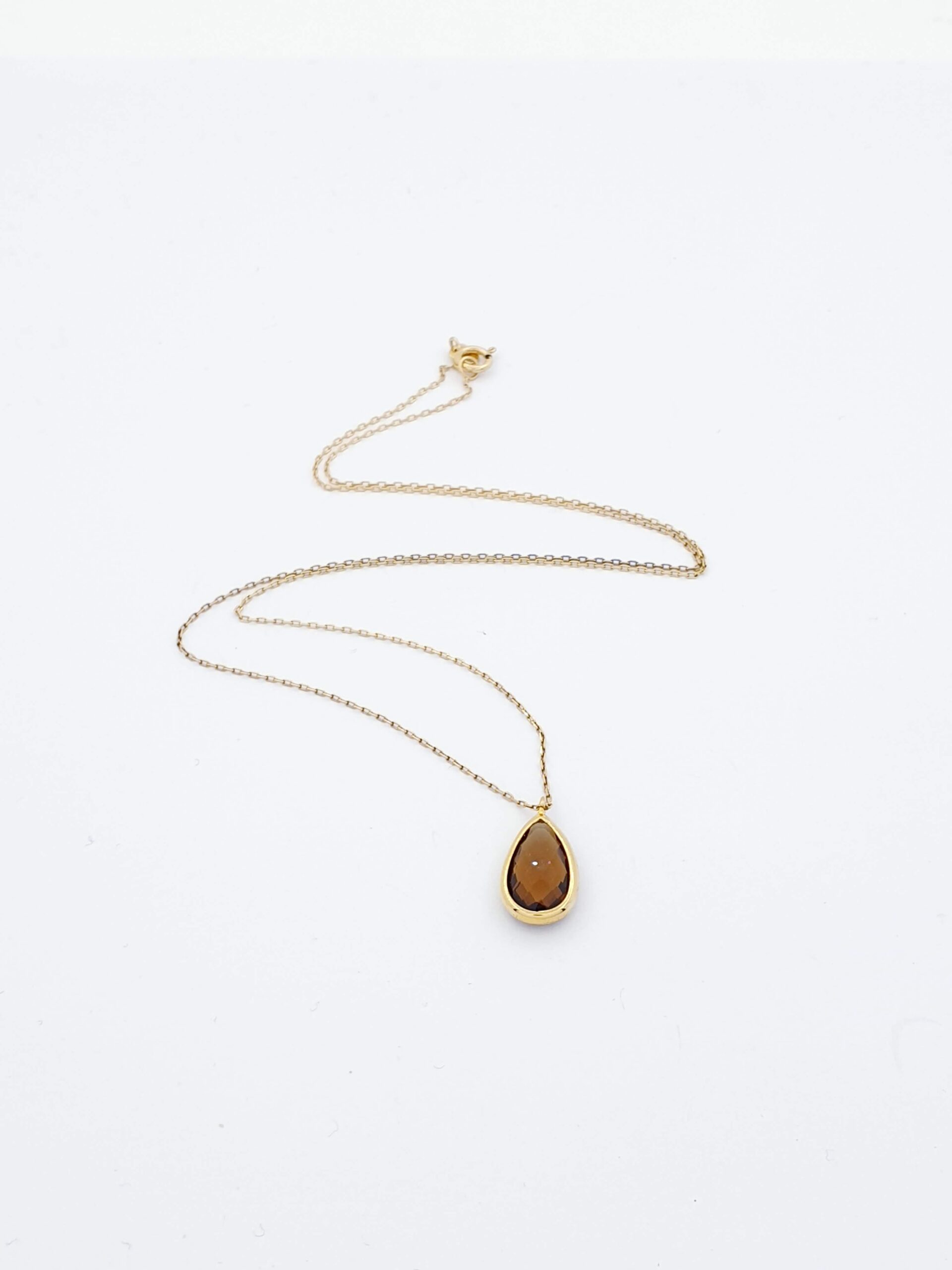 Ασημένιο Επιχρυσωμένο Κολιέ με Καφέ Ζιργκόν Δάκρυ
