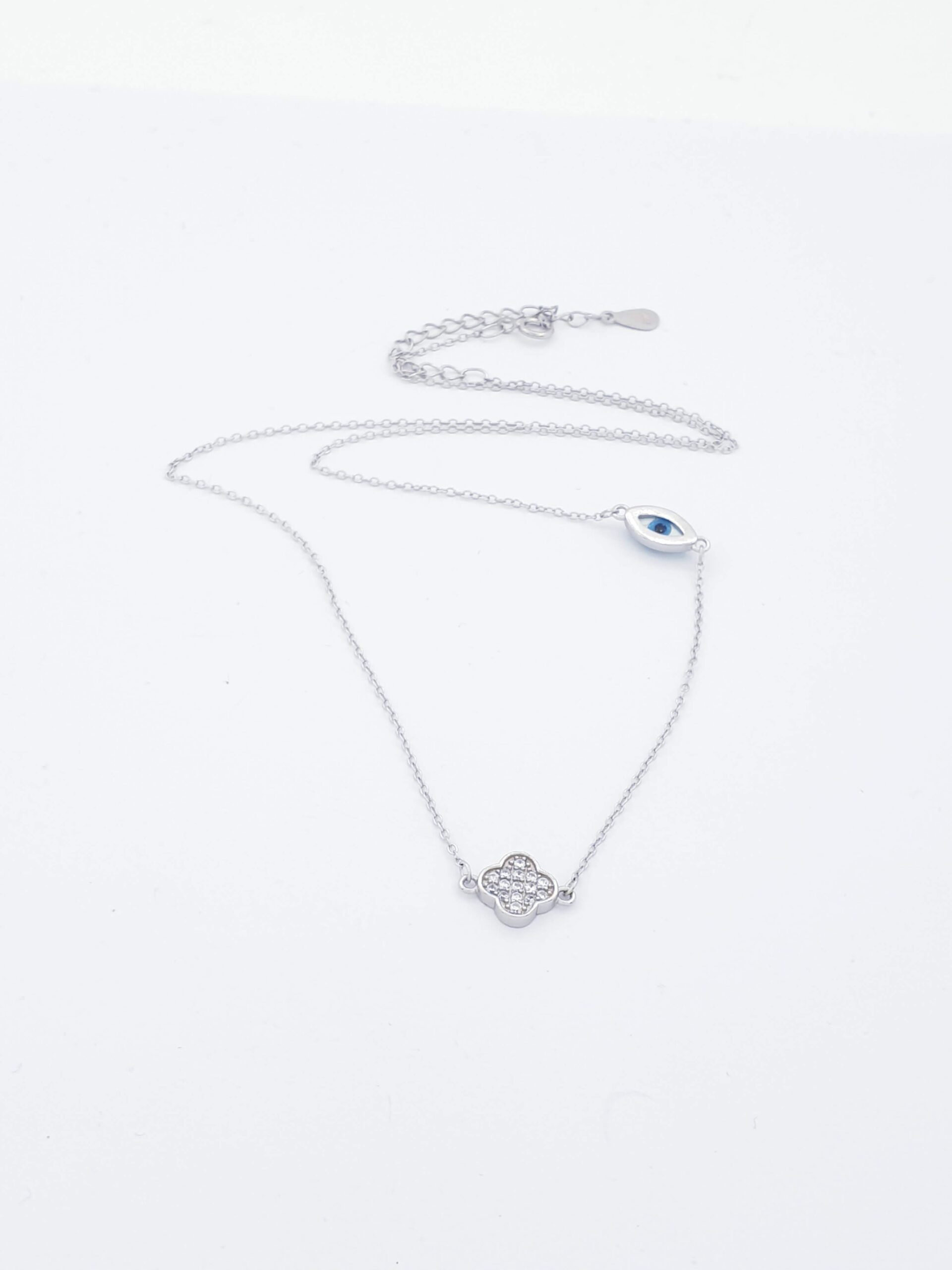 Ασημένιο Γυναικείο Κολιέ με σταυρουδάκι με άσπρα Ζιργκόν και ματάκι