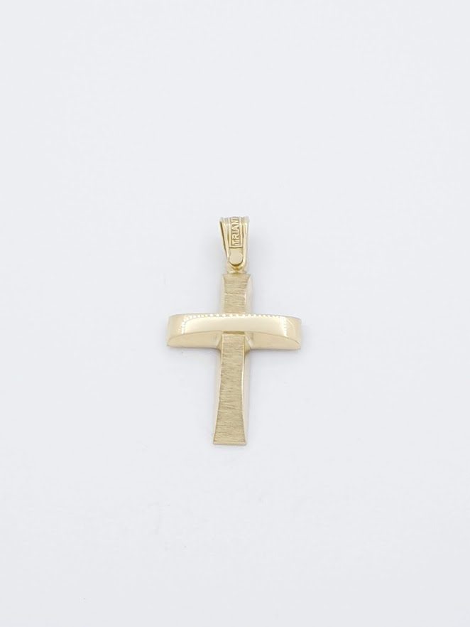Χρυσός Σταυρός Τριάντος Κ14 Ματ Λουστρέ κωδ.100621