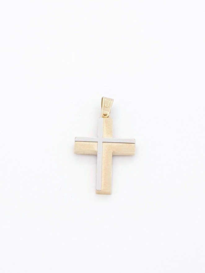 Χρυσός Σταυρός Κ14 Δίχρωμος Ματ Διπλής Όψης κωδ.100622