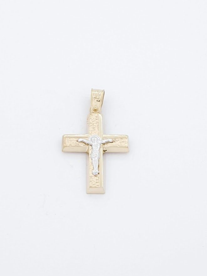 Χρυσός Σταυρός Anorado Κ14 Δίχρωμος Ματ με Εσταυρωμένο κωδ.100623