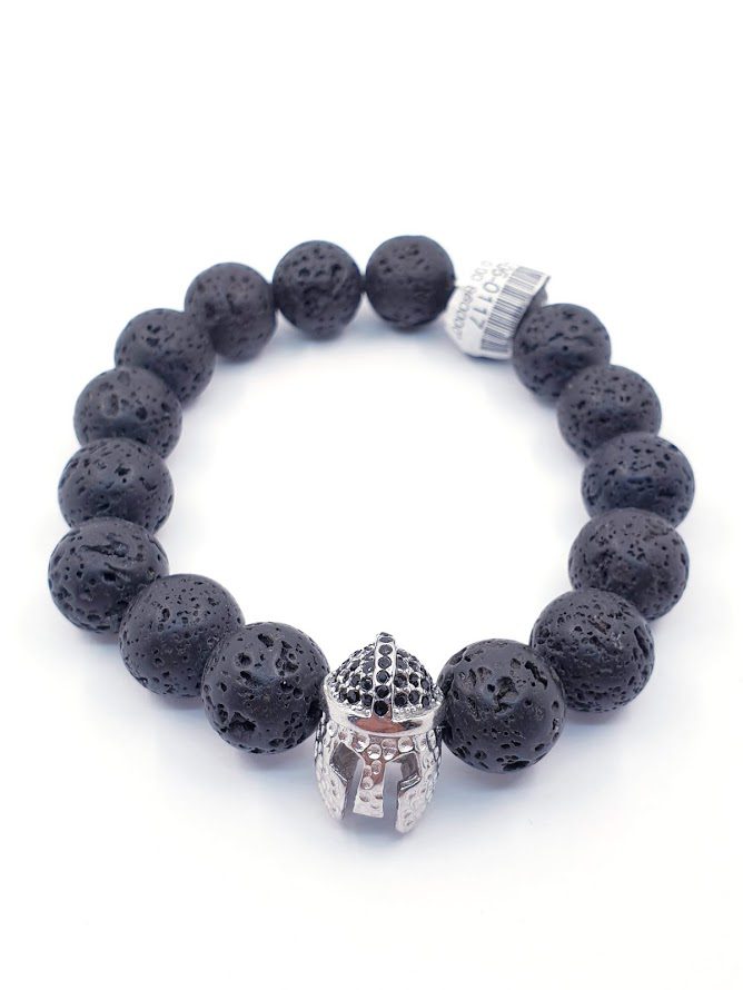Ανδρικό Βραχιόλι Ελαστικό με Περικεφαλαία και πέτρες λάβας κωδ.13-06-0117