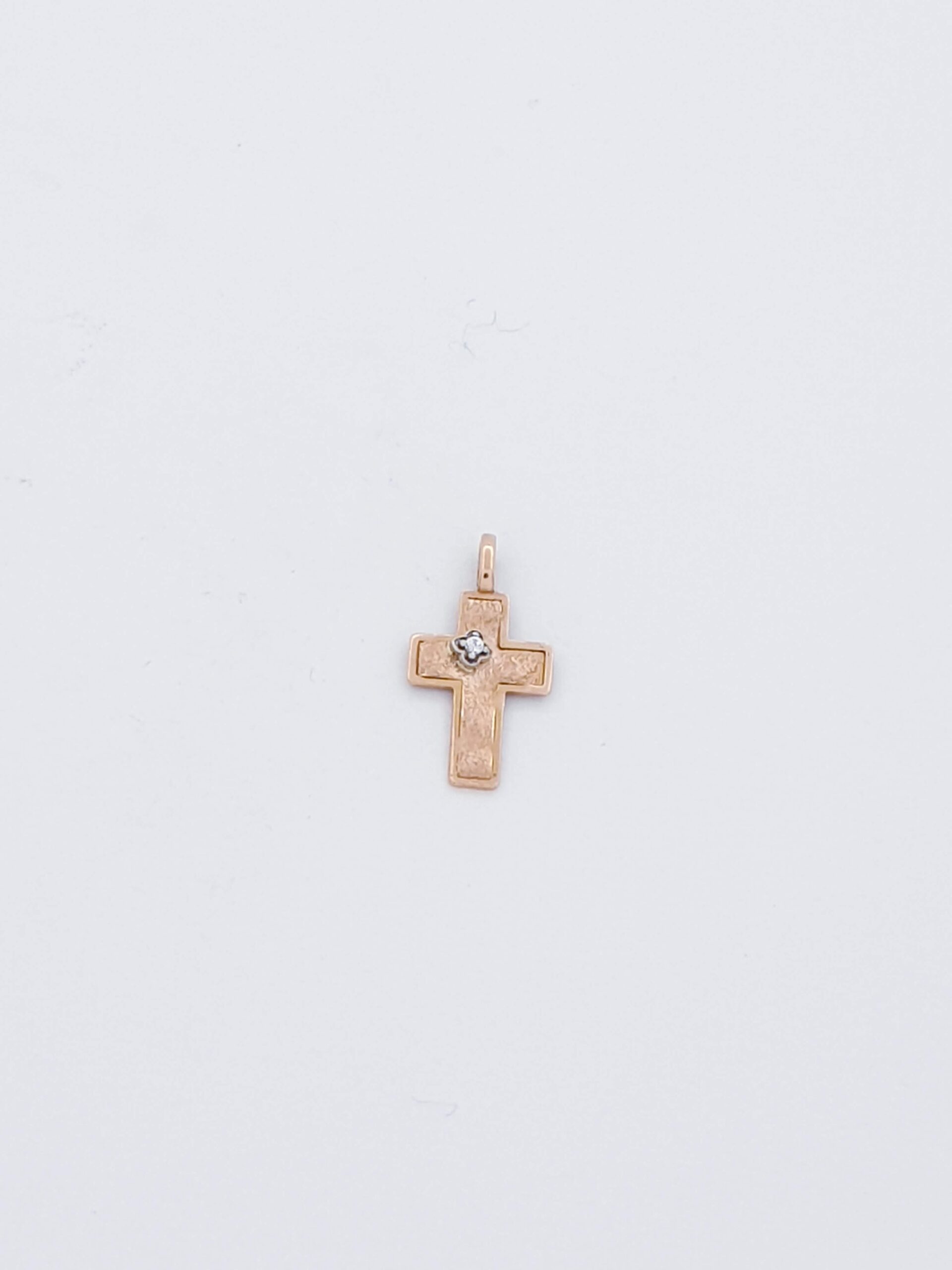 Γυναικείος σταυρός διπλής όψης σε ματ ροζ gold Κ14 0,5 γραμμάρια Διαστάσεις 18*10mm Εγγύηση Kirki Kosmima Guarantee